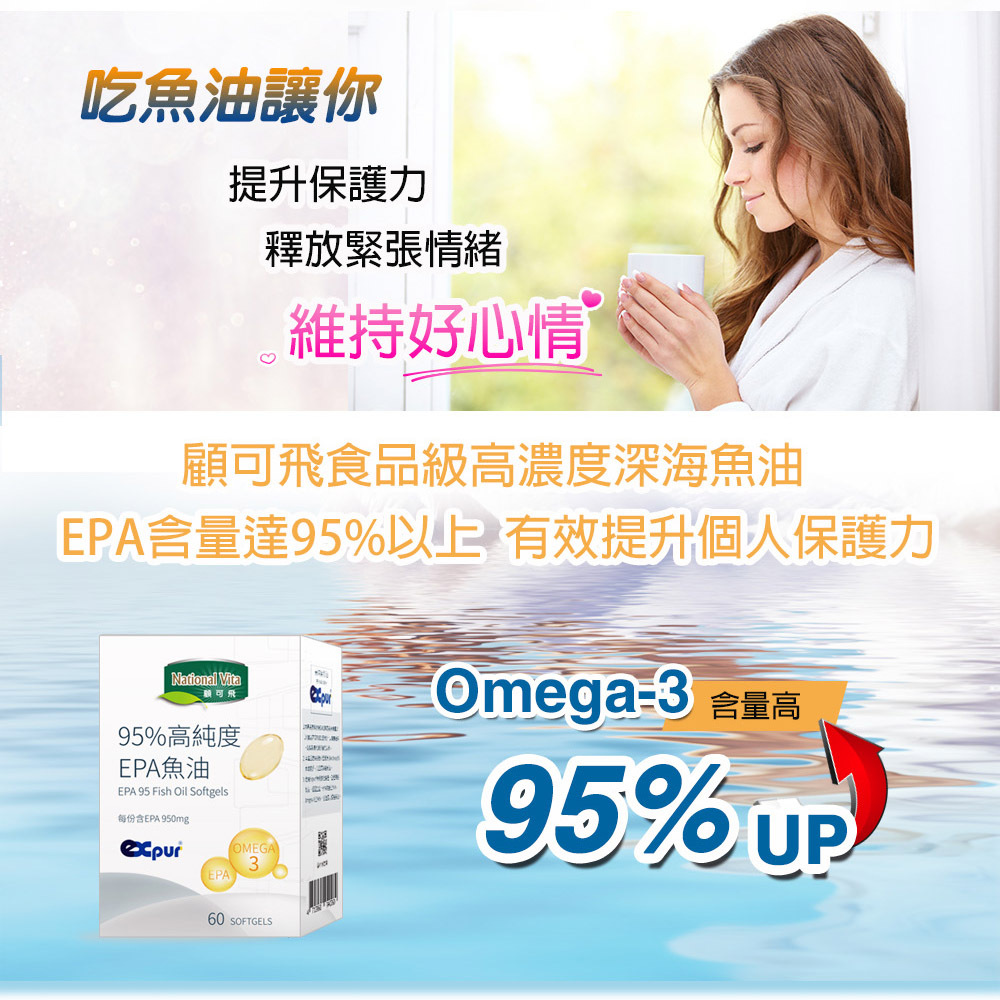 ● 顧可飛EPA95魚油一份(2粒)含Omega-3脂肪酸960毫克及EPA 950毫克。